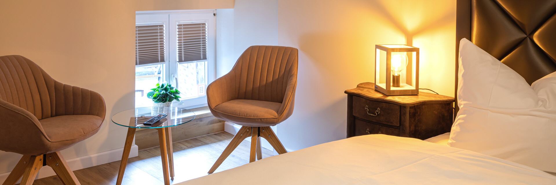 Mit dem Partner oder der Partnerin einen gemütlichen Aufenthalt erleben? Sich um nicht kümmern müssen und einfach mal in der wunderschönen Goslarer Altstadt bummeln und die Seele baumeln lassen? Dann sind unsere geräumigen Doppelzimmern gerade das Richtige für Sie. Die komfortabel und geschmackvoll eingerichteten Zimmer verfügen alle über einen Flachbildschirm mit Kabel-TV und eine kleine Sitzecke. Die hellen, freundlichen und modernen Bäder sind komplett ausgestattet mit Dusche, WC und Fön.